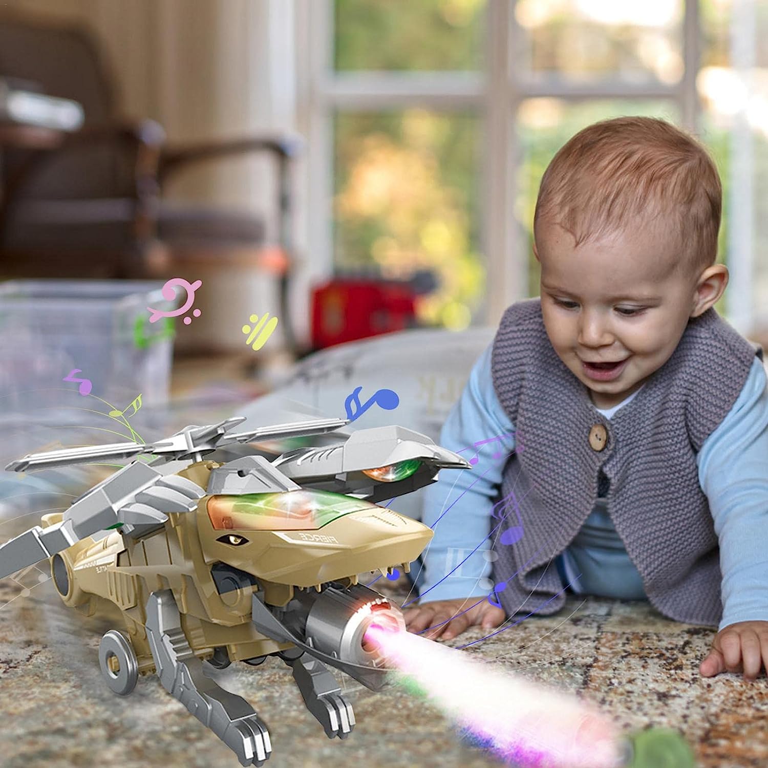 - Automatisch Obstakel Vermijden: Uitgerust met een universeel wiel, de Kletshuts™ Dino - LED Transformerende Dinosaurus Helikopter Speelgoed kan obstakels op zijn pad worden toegepast. Wanneer hij een obstakel tegenkomt, verandert hij automatisch van richting.
